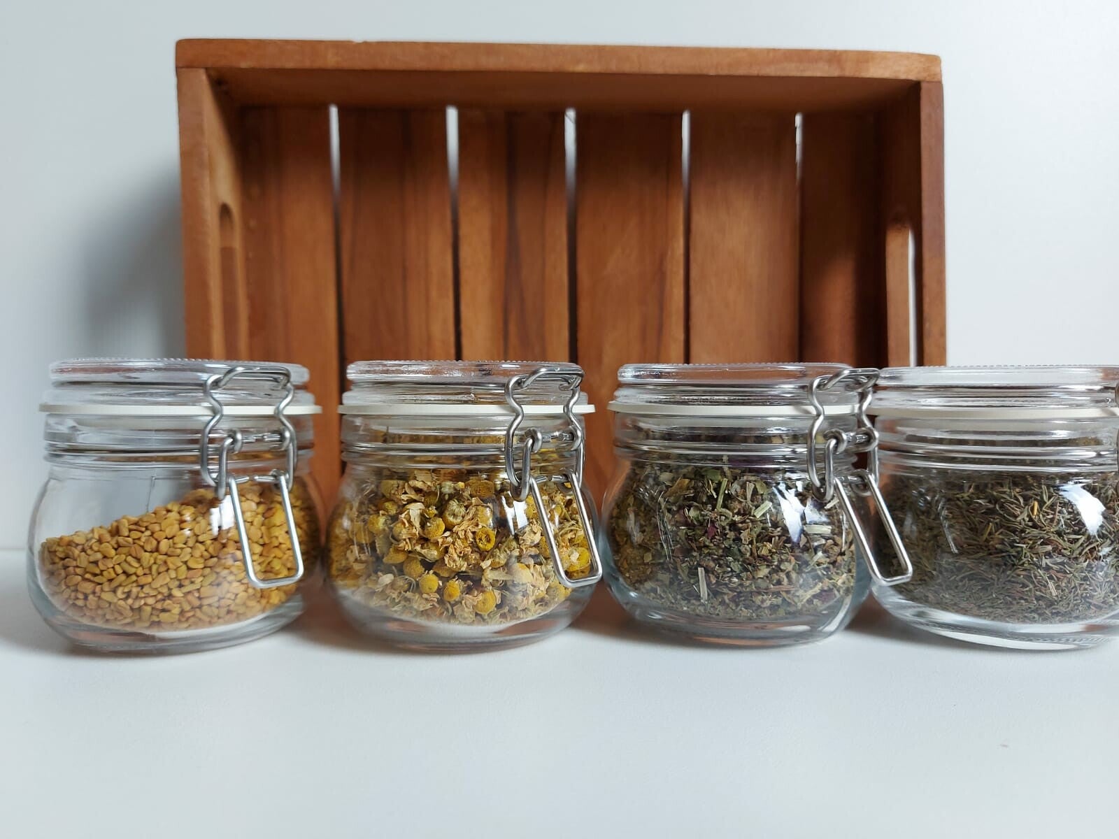 - 4 soorten pure, losse thee in een glazen weckpotje